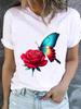 (Азиатский размер) Повседневная футболка с принтом в виде бабочки и цветочного узора, футболка с коротким рукавом, модная женская одежда, женские футболки с принтом и круглым вырезом