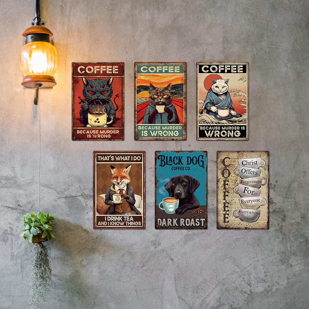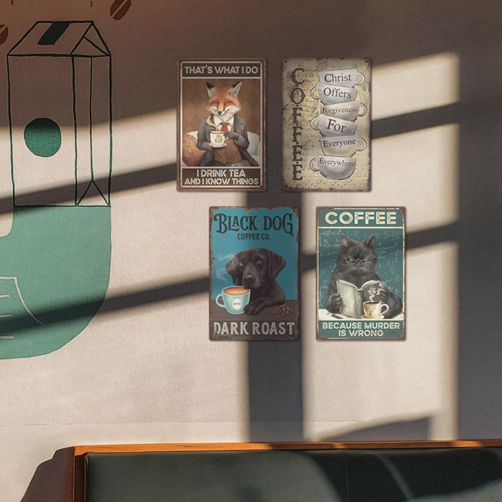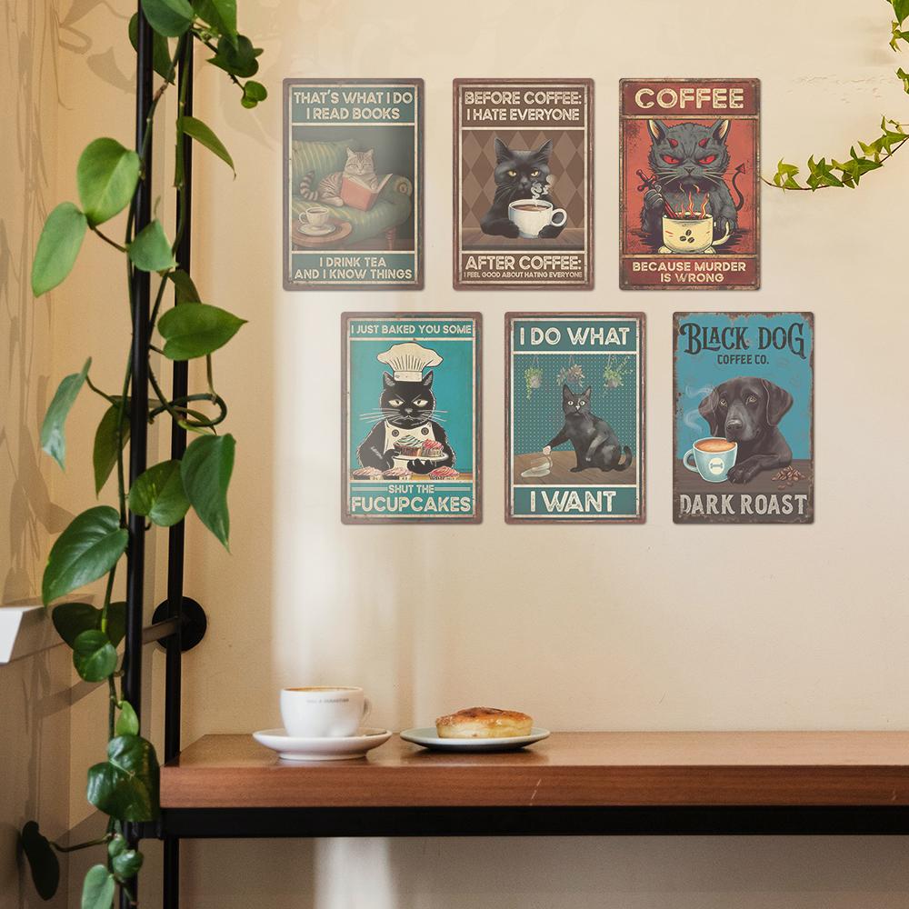 Декор, 1 шт. жестяная табличка с изображением кошки и собаки, винтажная кофейная металлическая пластина, настенный декор для дома, гостиной, спальни, кафе, 8 X 12 вкл.