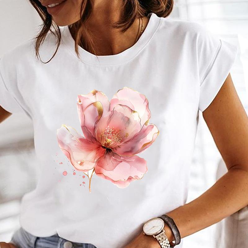 (Азиатский размер) Повседневная футболка с принтом в виде милого цветка в стиле 90-х, футболка с коротким рукавом, модная женская одежда, женские футболки с круглым вырезом и графическим принтом