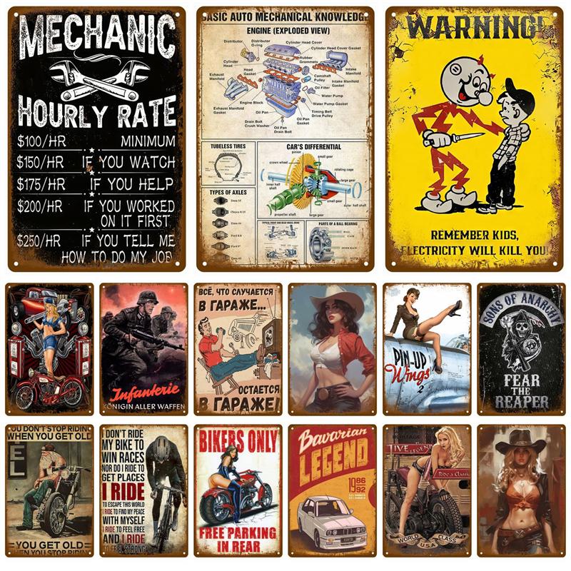 Металлический знак Гараж Газ Масло Свеча зажигания Шиномонтаж Man Cave Club Bar Home Wall Decor Art Vintage Decor Жестяная табличка Декоративная табличка