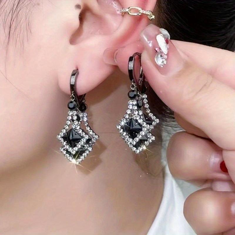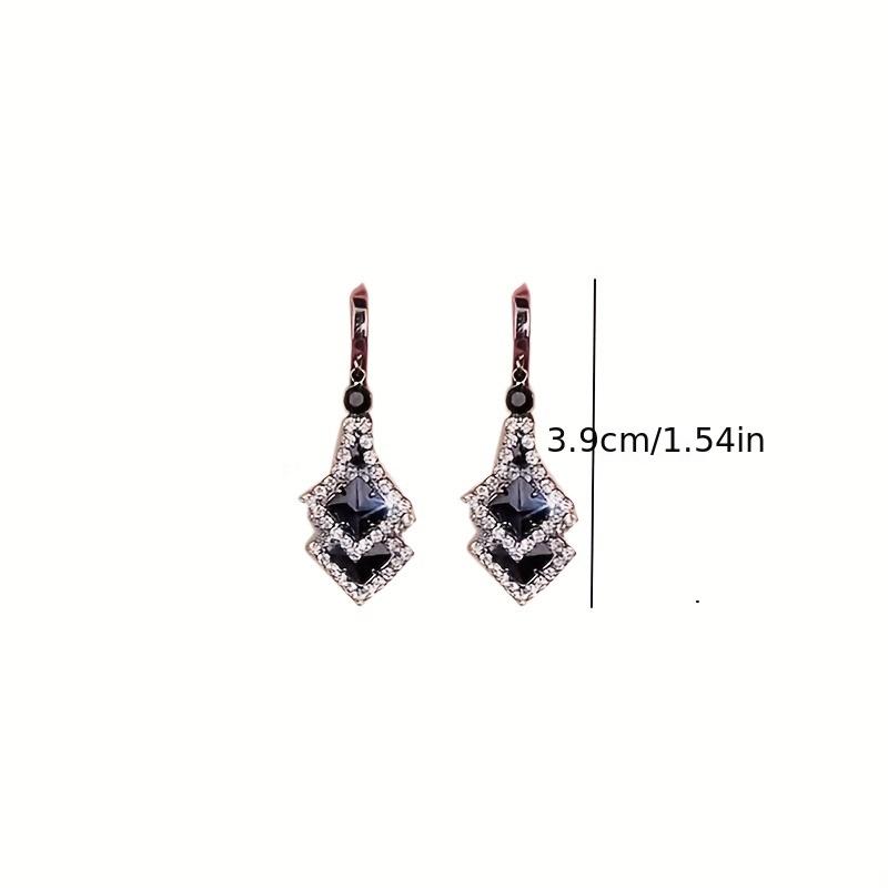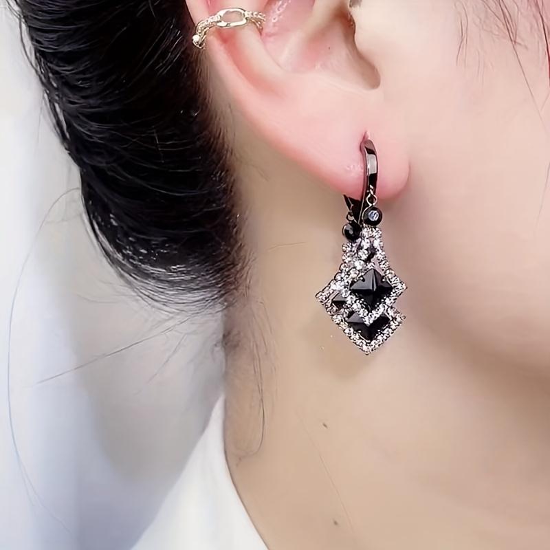 Серьги-подвески в форме ромба с черным цирконием, элегантный стиль ретро, ювелирные изделия из сплава, универсальные украшения для женщин, роскошные ювелирные изделия