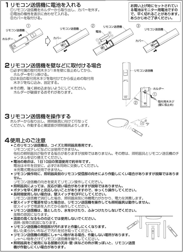 [Простой пульт дистанционного управления] Этот продукт можно использовать в качестве замены, заменителя или запасной части для пульта дистанционного управления KOIZUMI, который утерян или неисправен, например, не отвечает. (недействительность). Батареи не включены. Инструкции по настройке пульта дистанционного управления см. в руководстве по эксплуатации основного блока или обратитесь к производителю.
