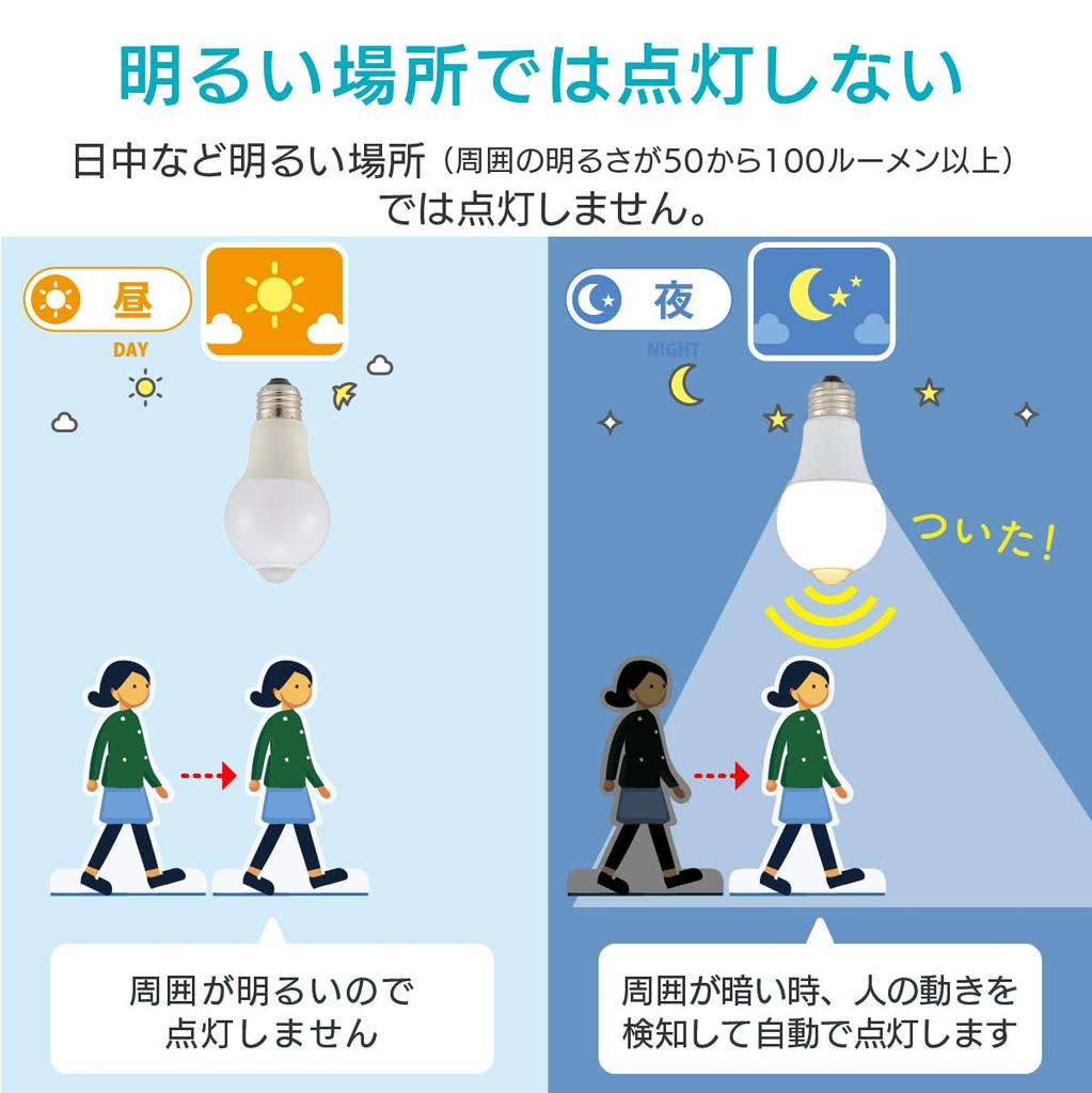 [Особенности] ◆ Когда вокруг темно, свет автоматически включается, определяя движение людей. ◆ Он автоматически выключается примерно через 2 минуты, если нет движения людей. ◆ Вы можете быть уверены, что он не выключится внезапно, и оснащен функцией уведомления об отключении света. (затемнение на 50% за 5 секунд до выключения света)