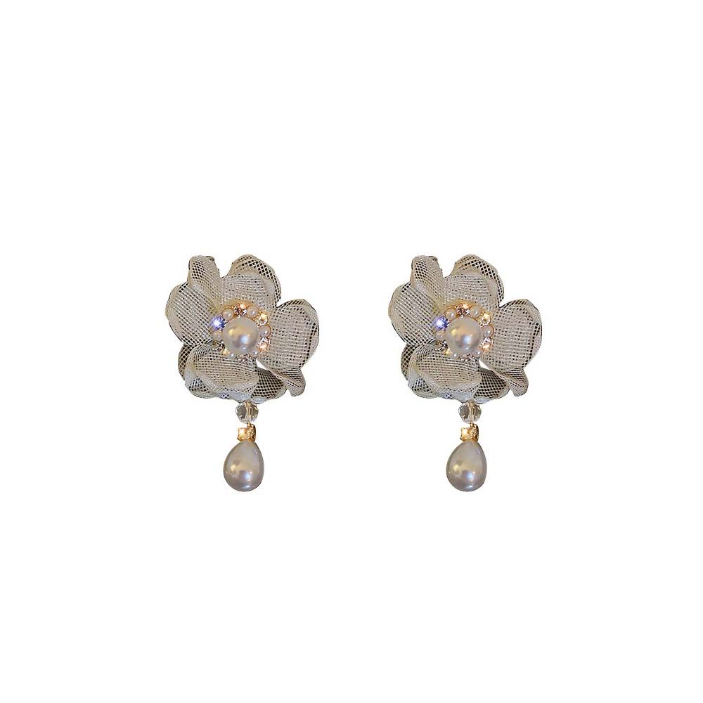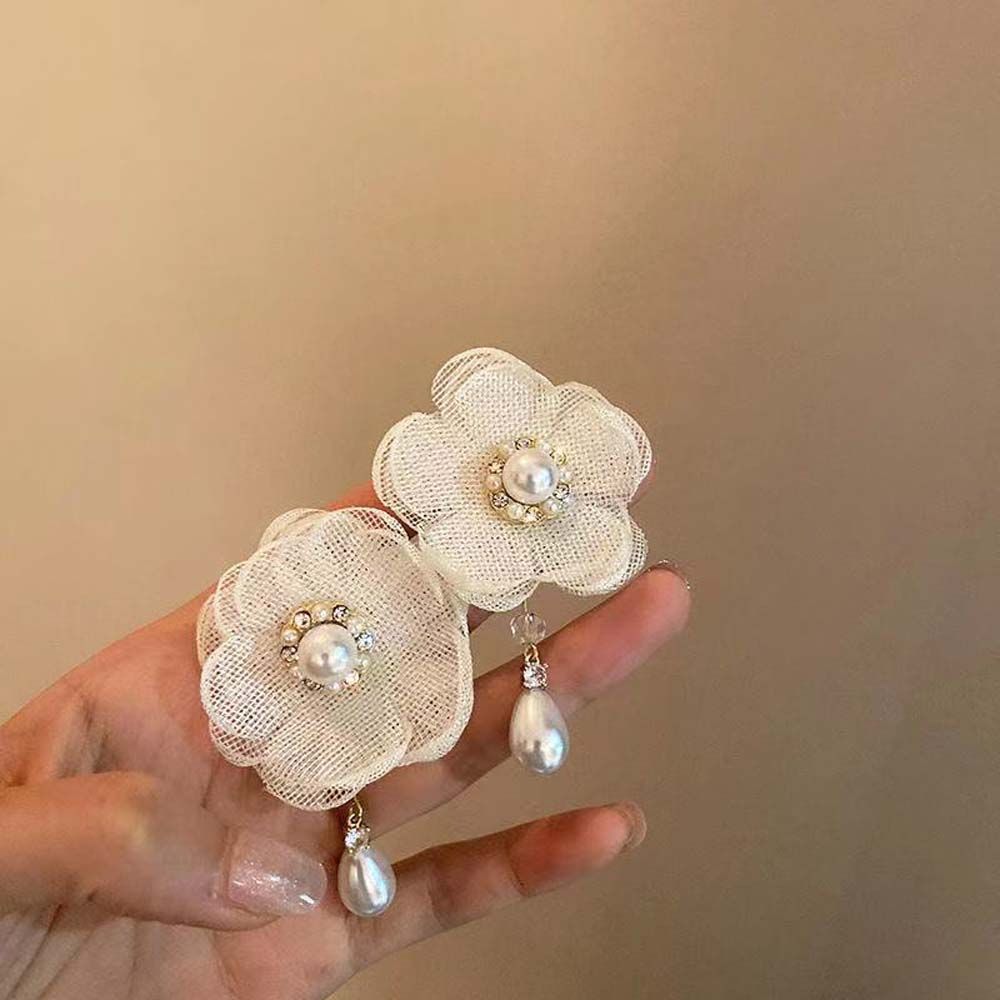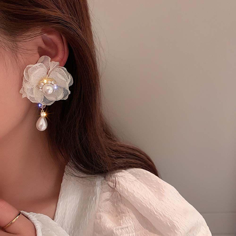 Кружевные цветочные модные сетчатые серьги для девочек, серьги в корейском стиле, модные ювелирные изделия, гвоздики для ушей