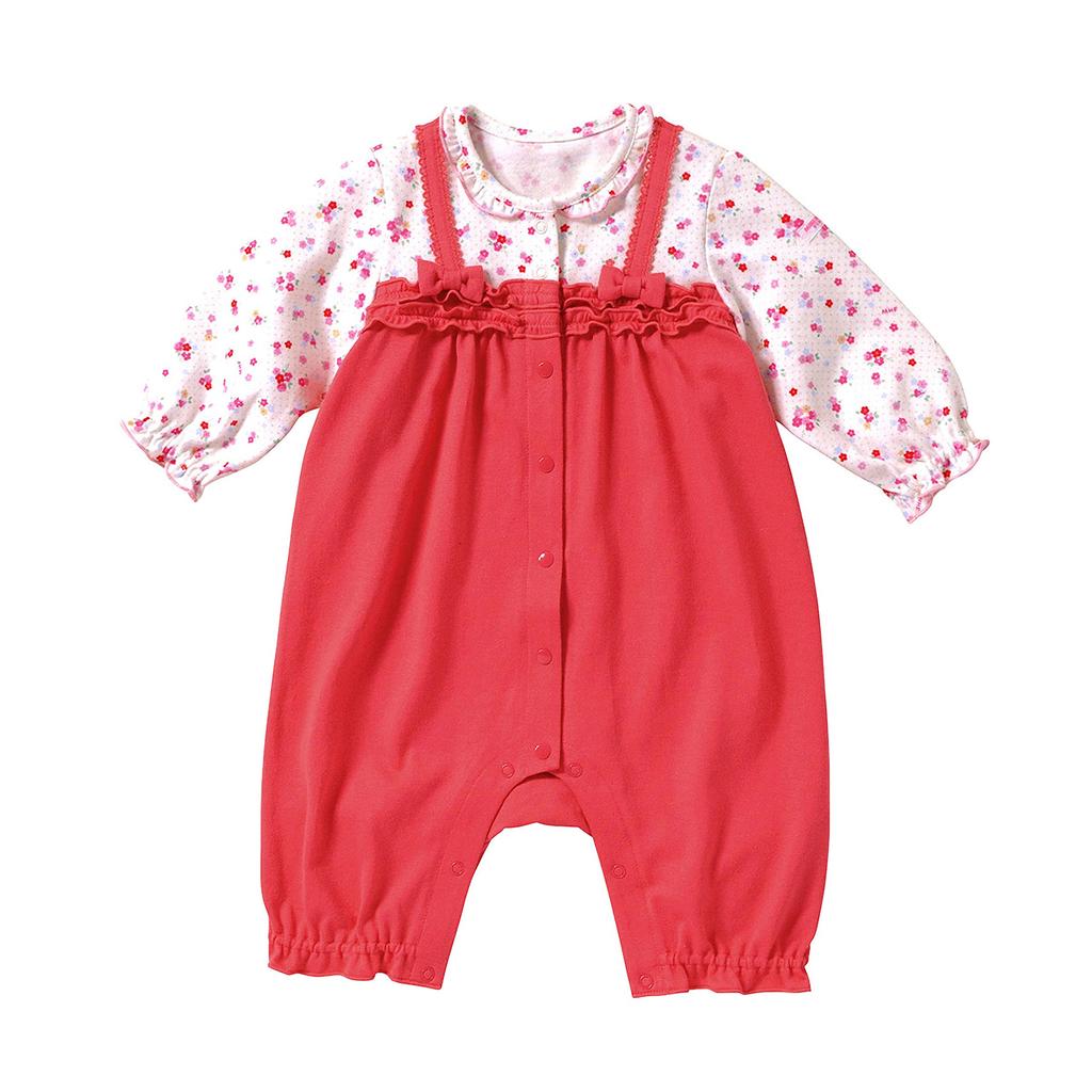 Комбинезон, длина, маленький цветок, сделано в Японии, детская одежда, 80 см, коралловый розовый [MIKI HOUSE] 3/4, для девочек, 43-1212-490