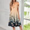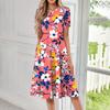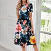Женское свободное повседневное и модное платье с круглым вырезом и короткими рукавами, средней длины с принтом