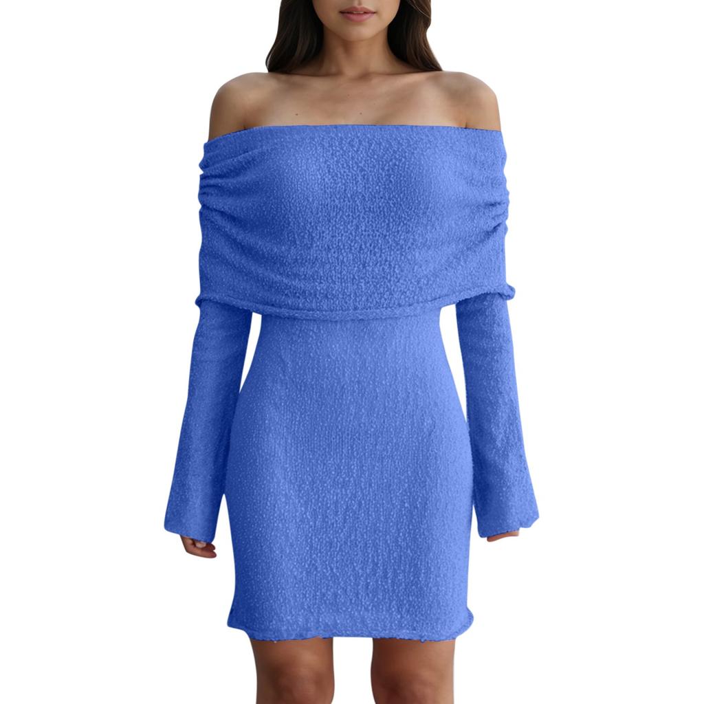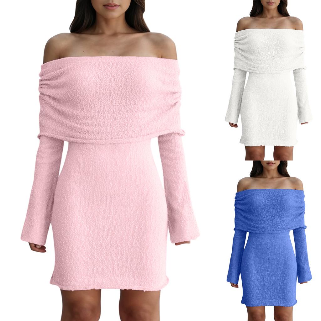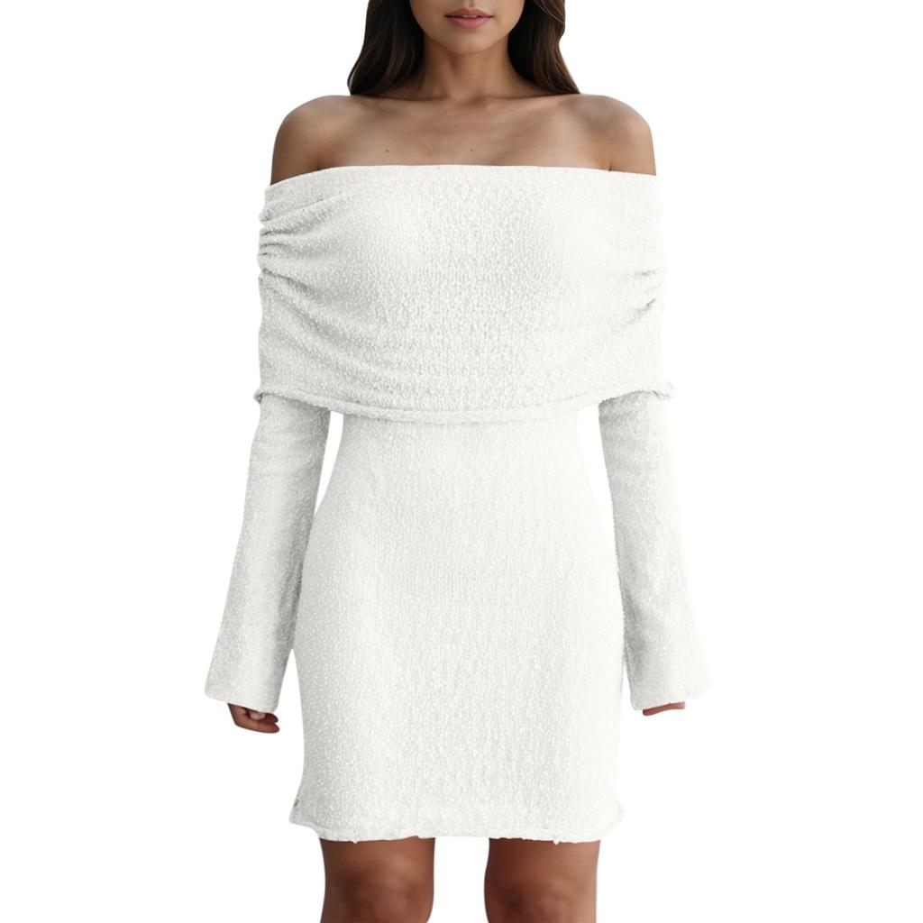 Женские платья Сексуальные короткие трикотажные платья с открытыми плечами и длинными рукавами