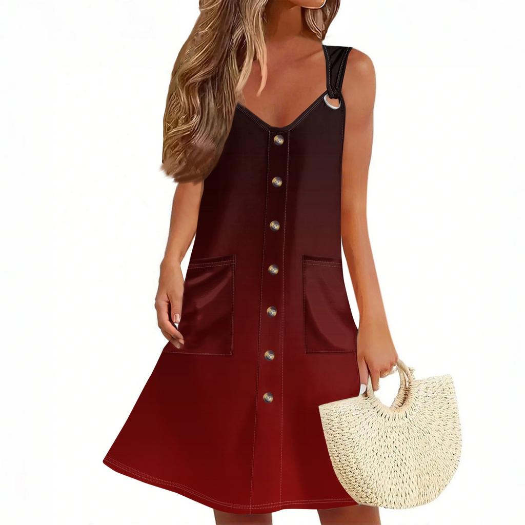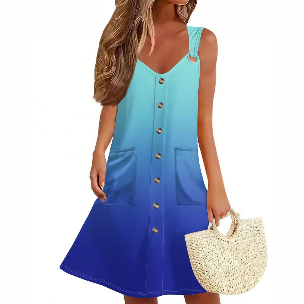 Женское летнее платье с карманом, без рукавов, сарафан с градиентным принтом