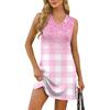 Женский летний повседневный сарафан без рукавов с V-образным вырезом и принтом в клетку для пляжного отдыха