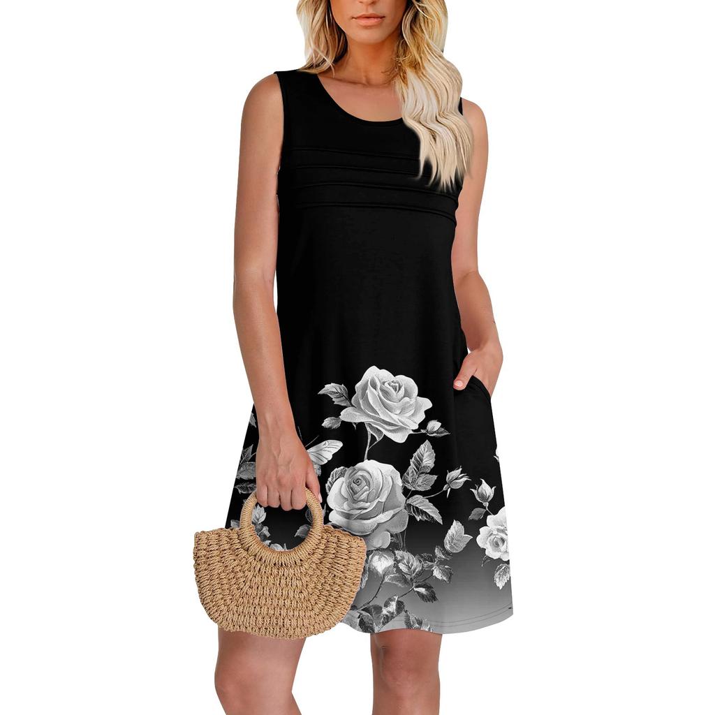 Характерная черта: Летние платья-майки для женщин поставляются с красочным цветочным принтом, повседневные платья с U-образным вырезом, платья-майки без рукавов, летние свободные платья с карманами для женщин, платья-футболки, повседневные женские пляжные платья.