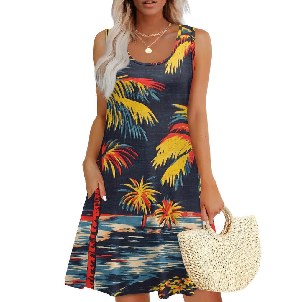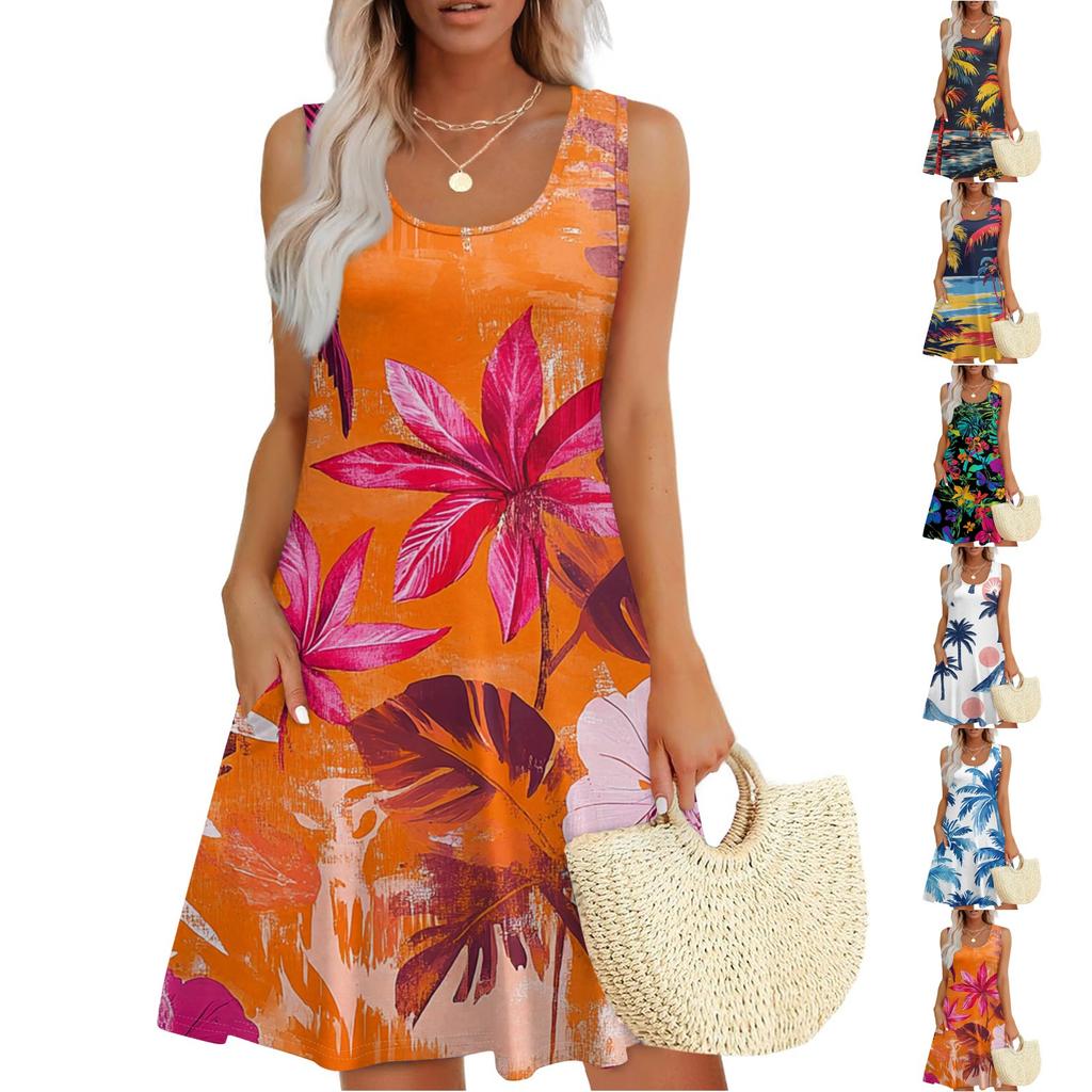 Женское повседневное модное платье с принтом и U-образным вырезом без рукавов