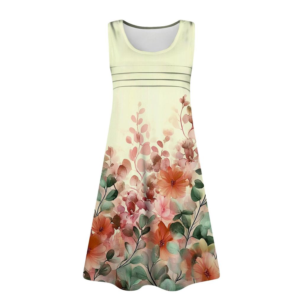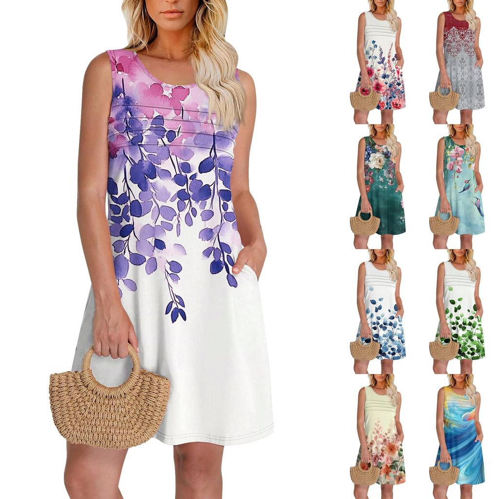 Характерная черта: Летние платья-майки для женщин поставляются с красочным цветочным принтом, повседневные платья с U-образным вырезом, платья-майки без рукавов, летние свободные платья с карманами для женщин, платья-футболки, повседневные женские пляжные платья.