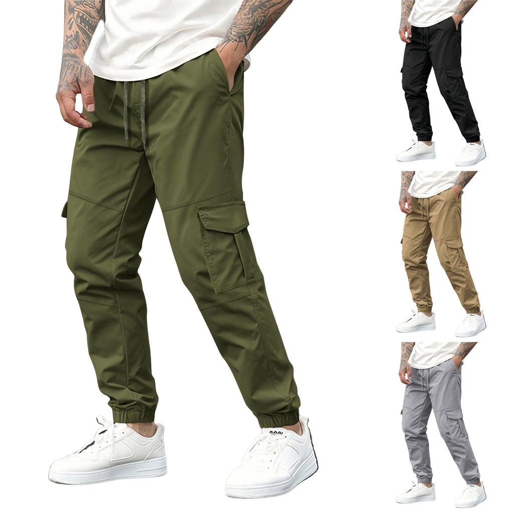 Мужские комбинезоны, повседневные брюки с несколькими карманами и завязками, походные брюки, хлопковые саржевые брюки