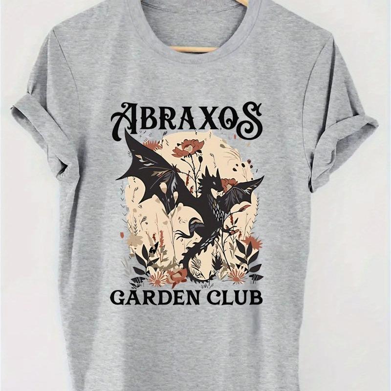 Abrakso Garden Club Графический принт Летние повседневные свободные футболки с круглым вырезом и короткими рукавами для женщин