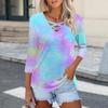 Женская модная свободная футболка с перекрестным V-образным вырезом и семью рукавами, повседневный топ с винтажным цветочным принтом