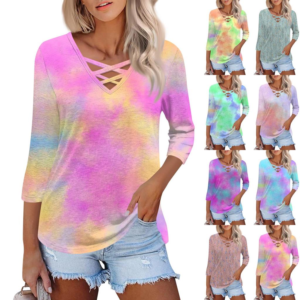 Женская модная свободная футболка с перекрестным V-образным вырезом и семью рукавами, повседневный топ с винтажным цветочным принтом — купить товар онлайн с бесплатной доставкой до всему миру!