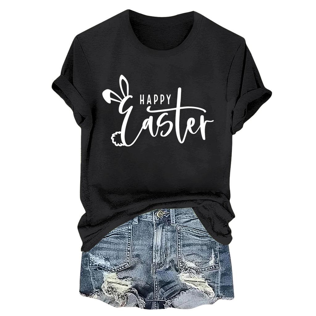 Женская модная пасхальная принтованная повседневная плиссированная круглая футболка с коротким рукавом