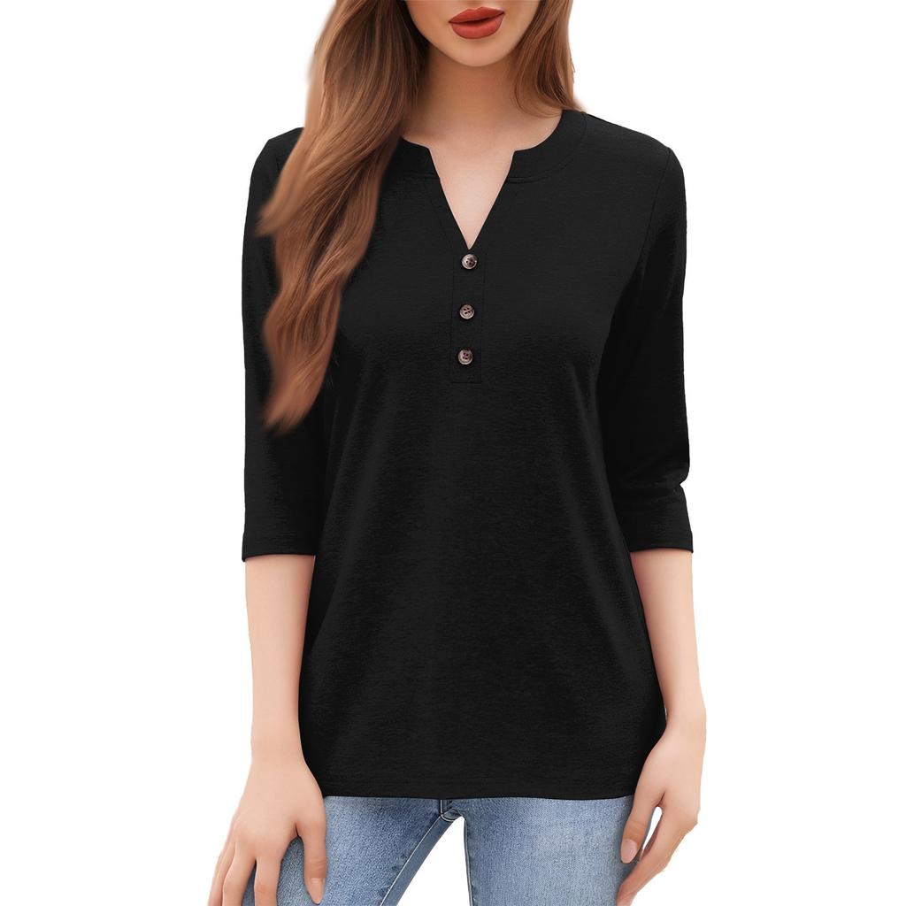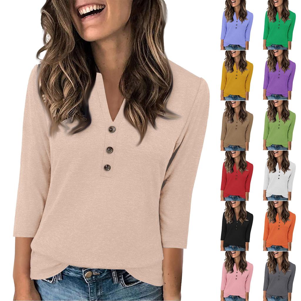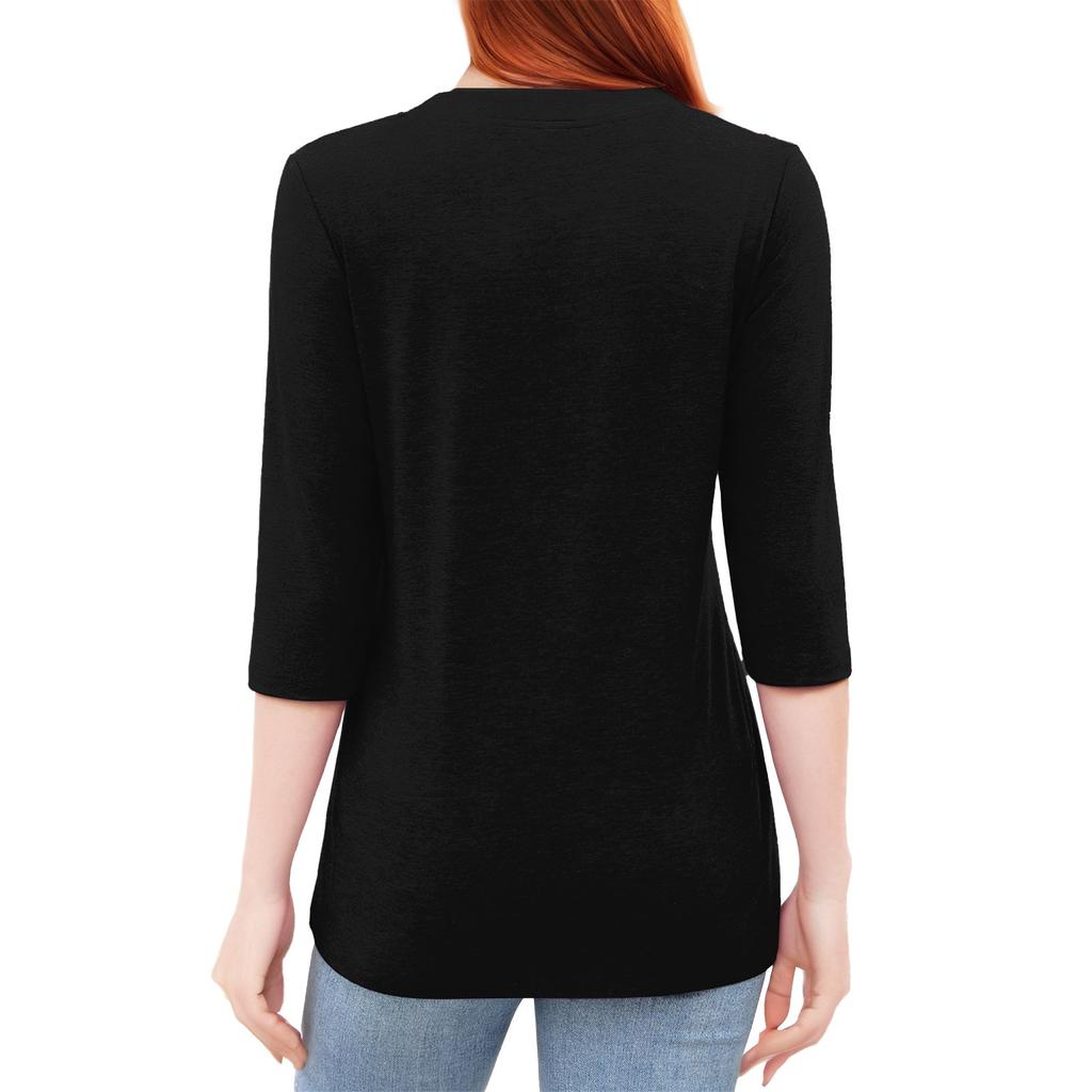 Женская мода повседневный свободный топ с рукавом 3/4 в полоску с круглым вырезом