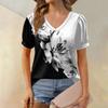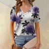 Женская модная футболка с коротким рукавом и V-образным вырезом, с цветочным принтом, свободная повседневная футболка