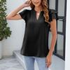 Весна и лето Новые однотонные футболки с V-образным вырезом и коротким рукавом Модные топы с оборками для женщин
