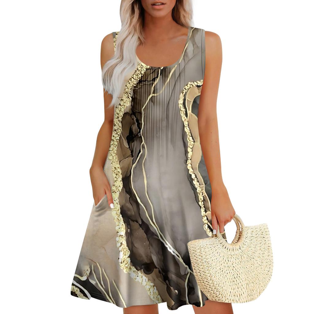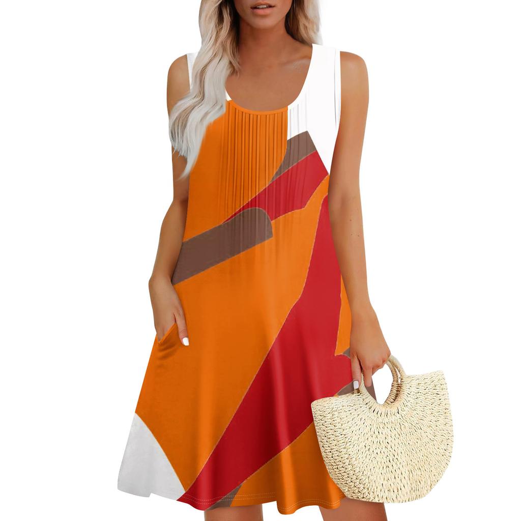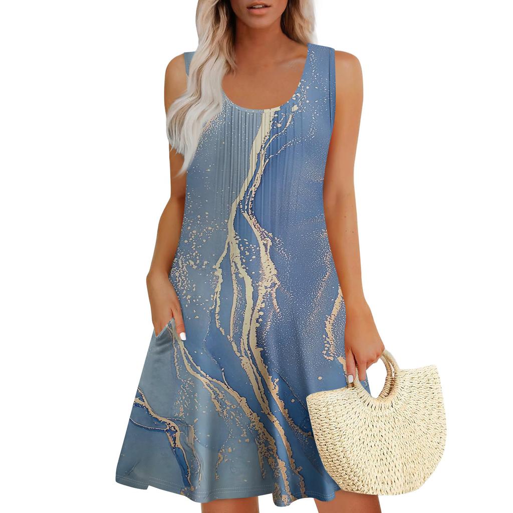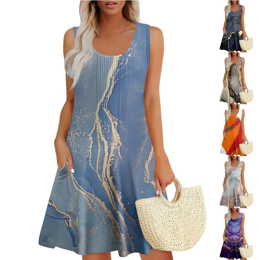 Женские летние платья Свободные сарафаны без рукавов Платье с карманами