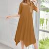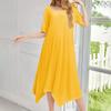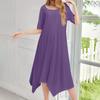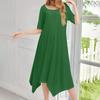 Женское повседневное модное платье миди с круглым вырезом и коротким рукавом, однотонное, с неровным подолом