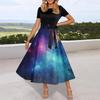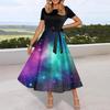 Платье-клеш в стиле ретро с принтом для женщин, повседневное, с коротким рукавом, круглым вырезом, винтажное платье