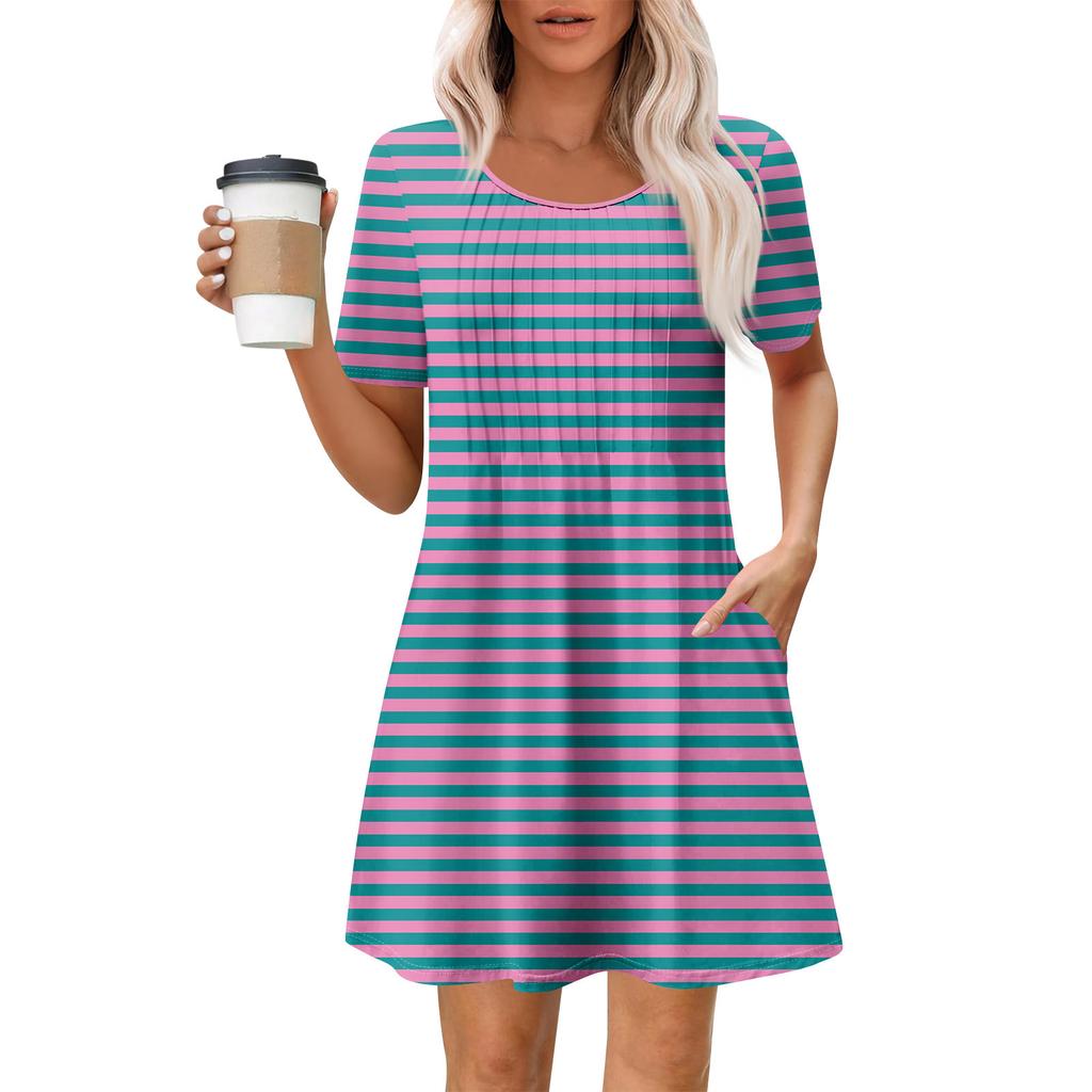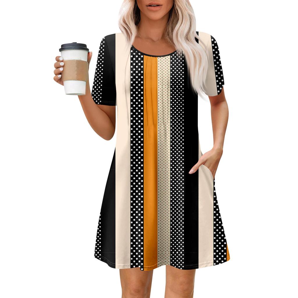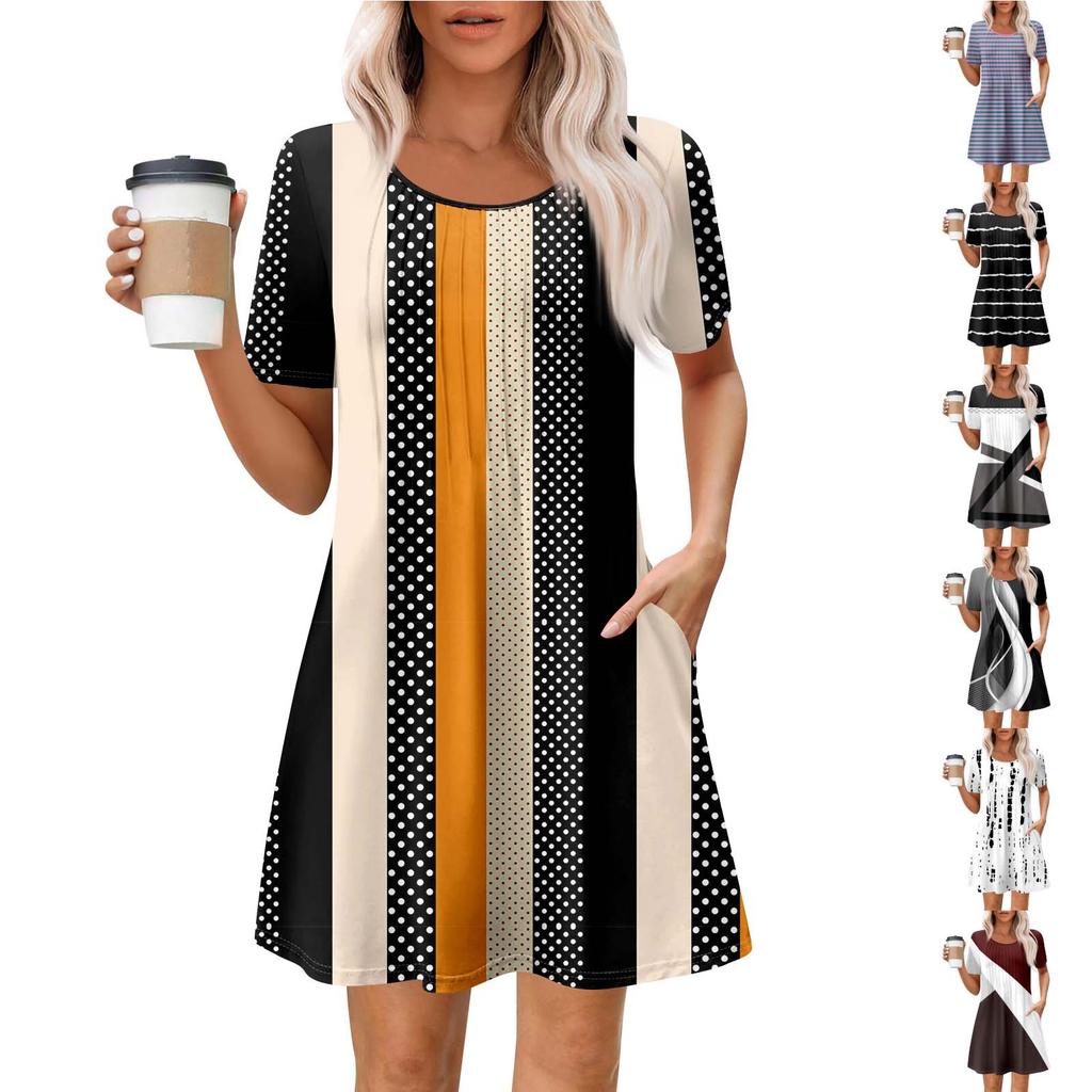Женское летнее платье свободного покроя для пляжного отдыха, сарафан с коротким рукавом и круглым вырезом, с карманом, с коротким рукавом, платье-рубашка