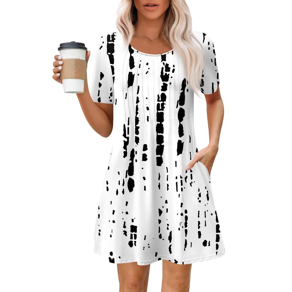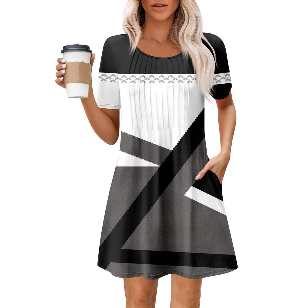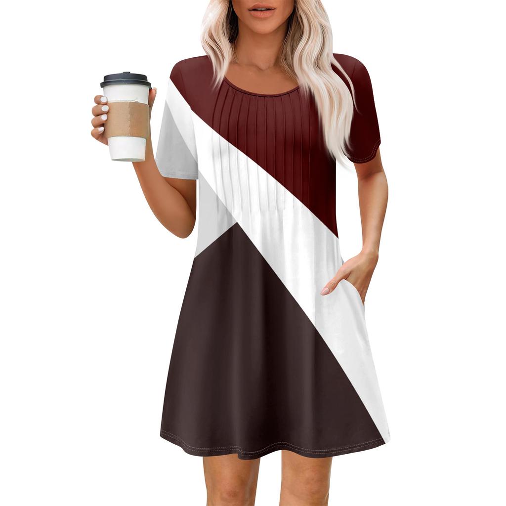 Женское летнее платье свободного покроя для пляжного отдыха, сарафан с коротким рукавом и круглым вырезом, с карманом, с коротким рукавом, платье-рубашка