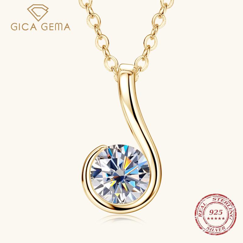Gica Gema Новое 6-символьное колье с муассанитом для женщин, из серебра 925 пробы, с кулоном нишевого дизайна, цепочка до ключицы