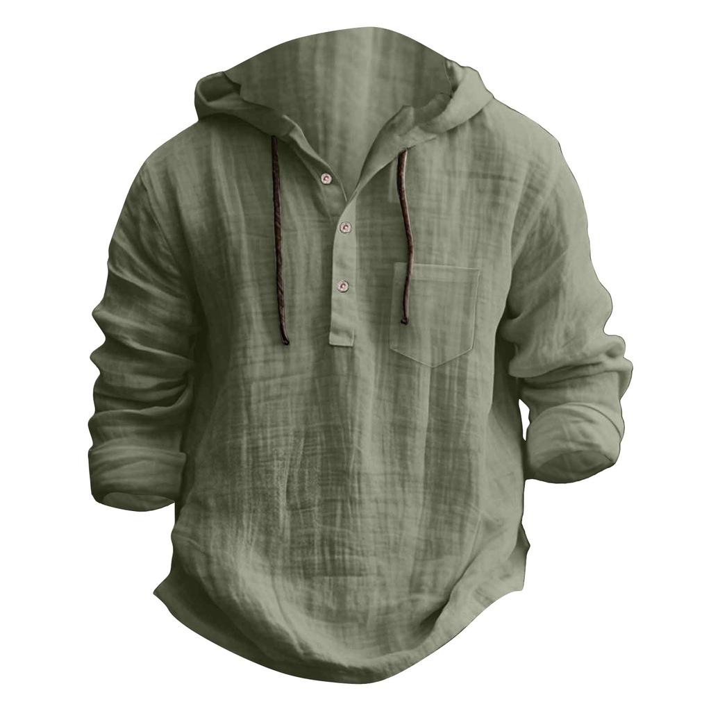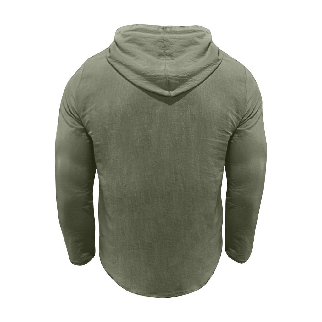 Мужская летняя однотонная хлопковая льняная куртка с длинным рукавом и капюшоном на пуговицах