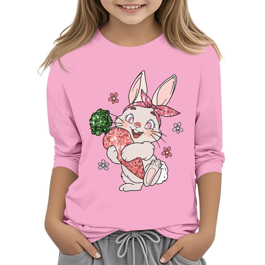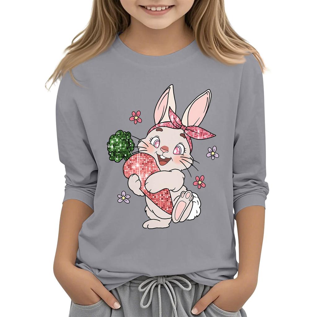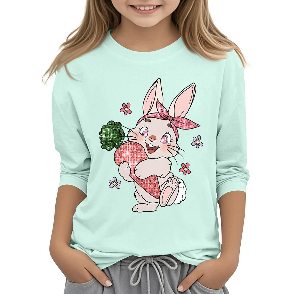 Повседневная футболка с круглым вырезом и пасхальным принтом, с рукавами 7 точек для детей