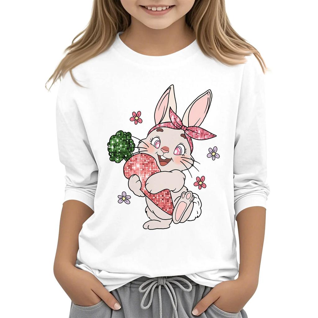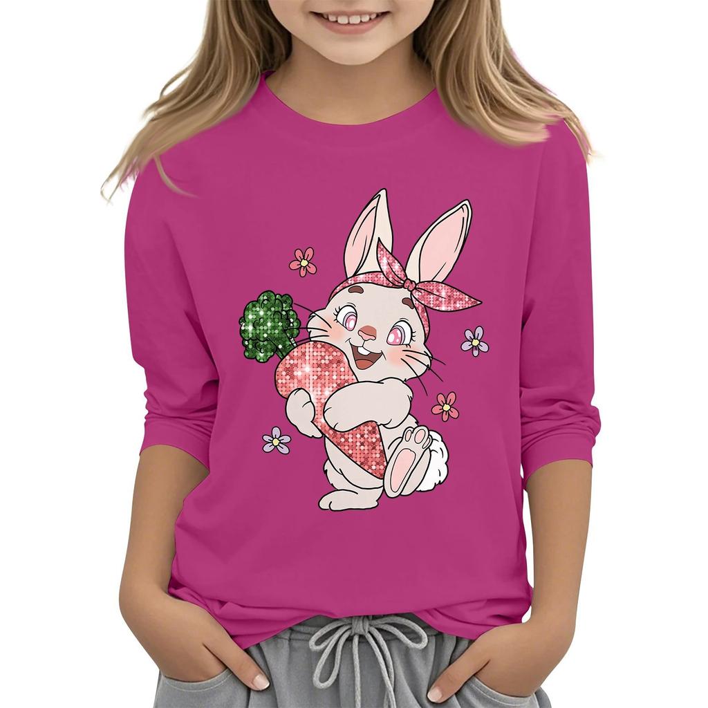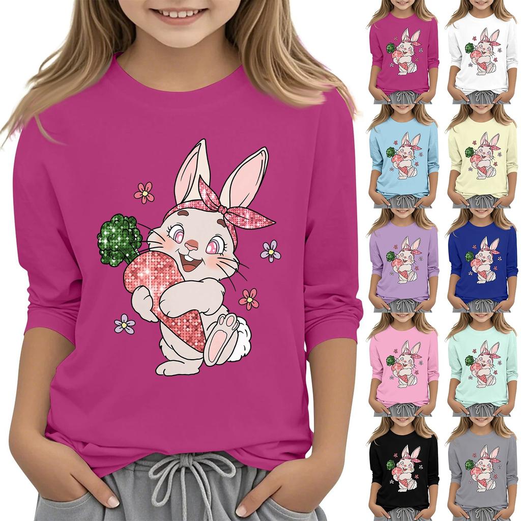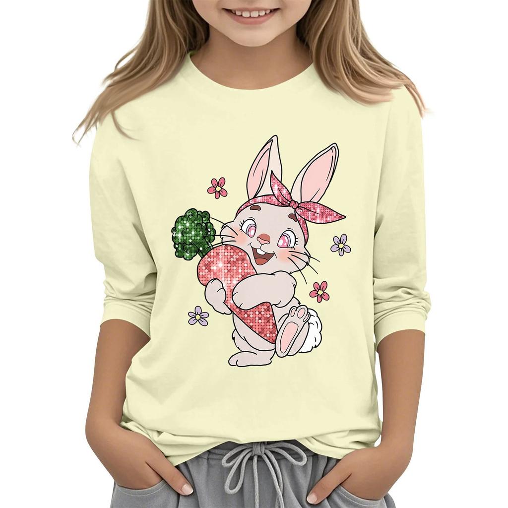 Повседневная футболка с круглым вырезом и пасхальным принтом, с рукавами 7 точек для детей
