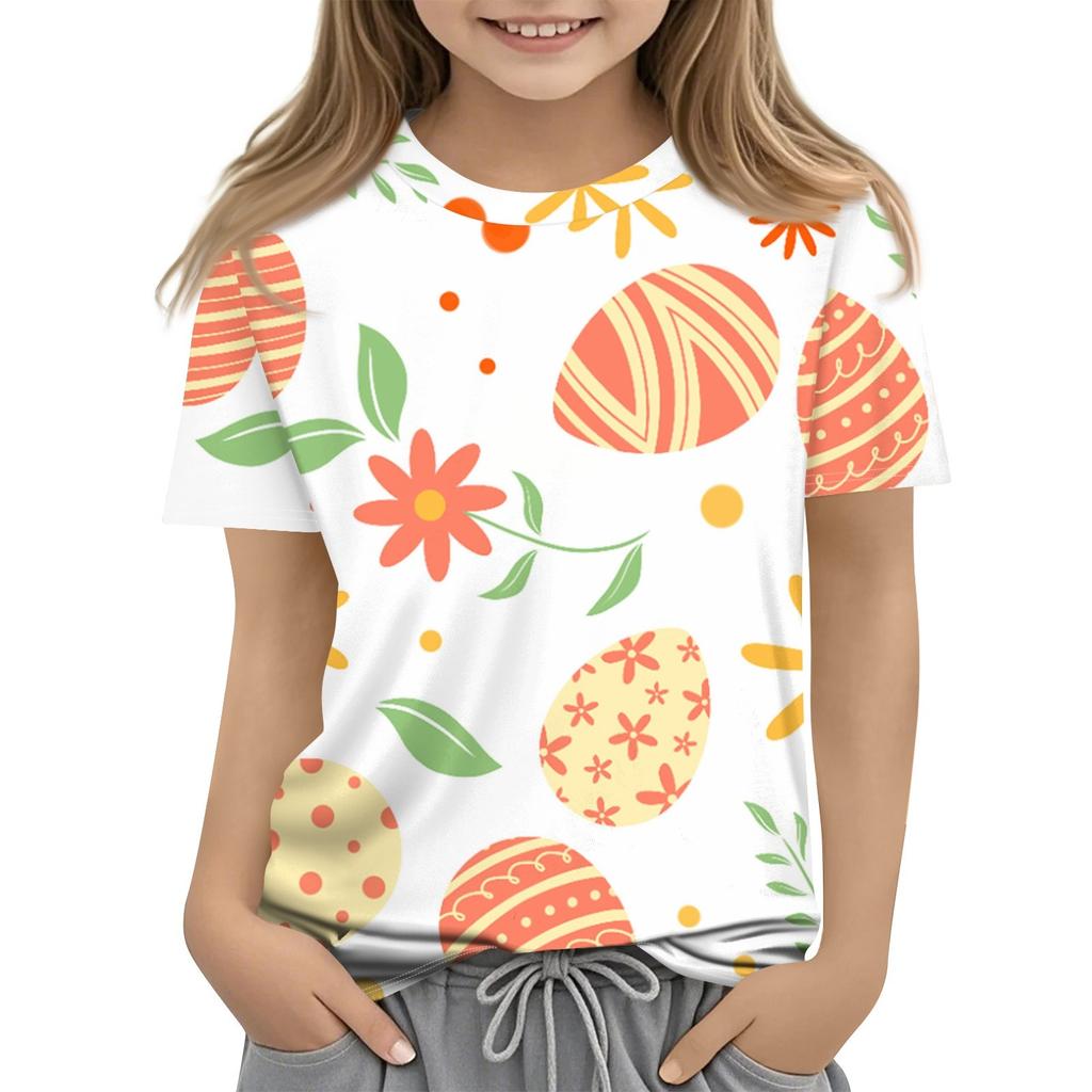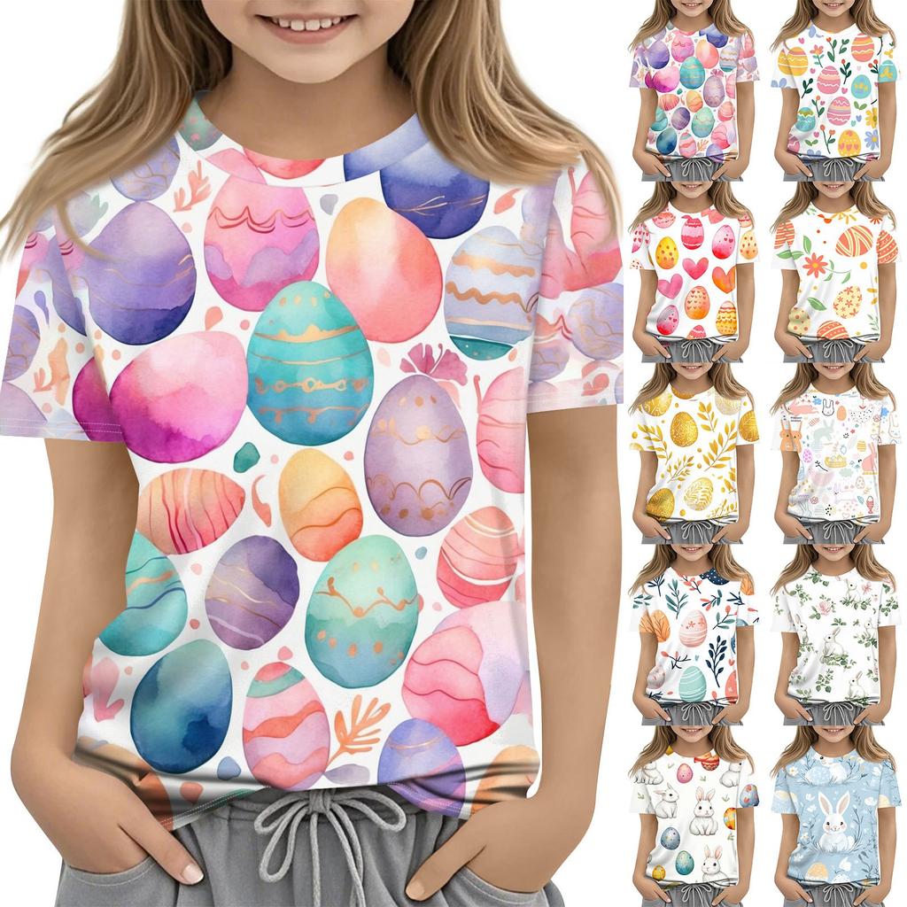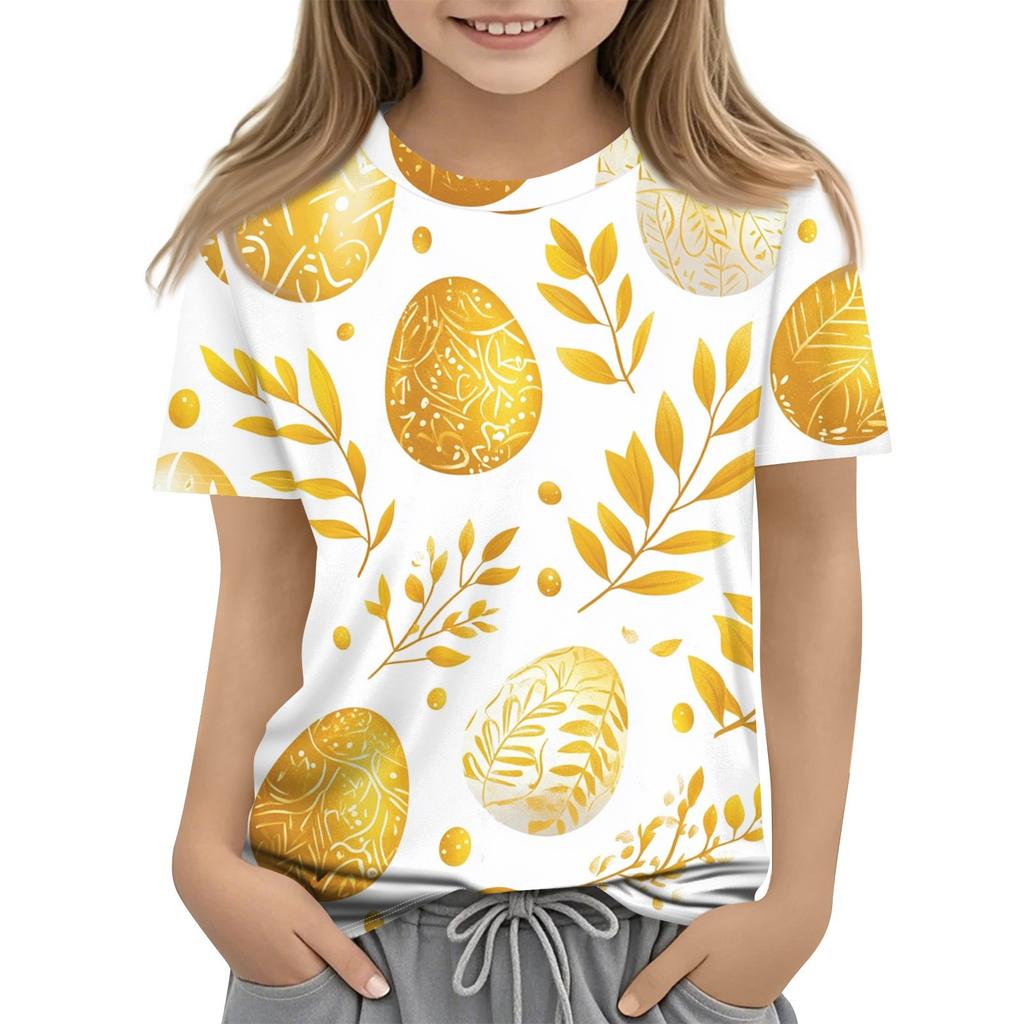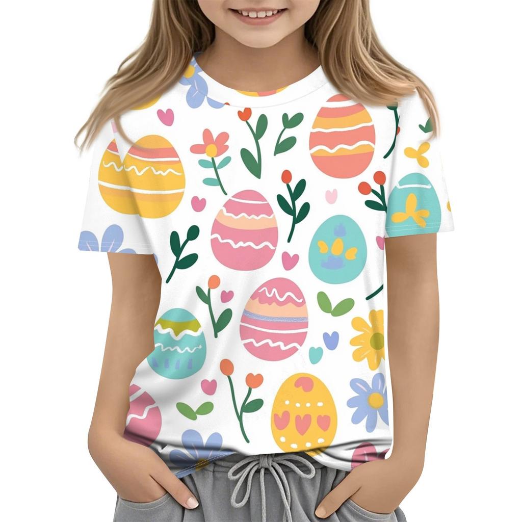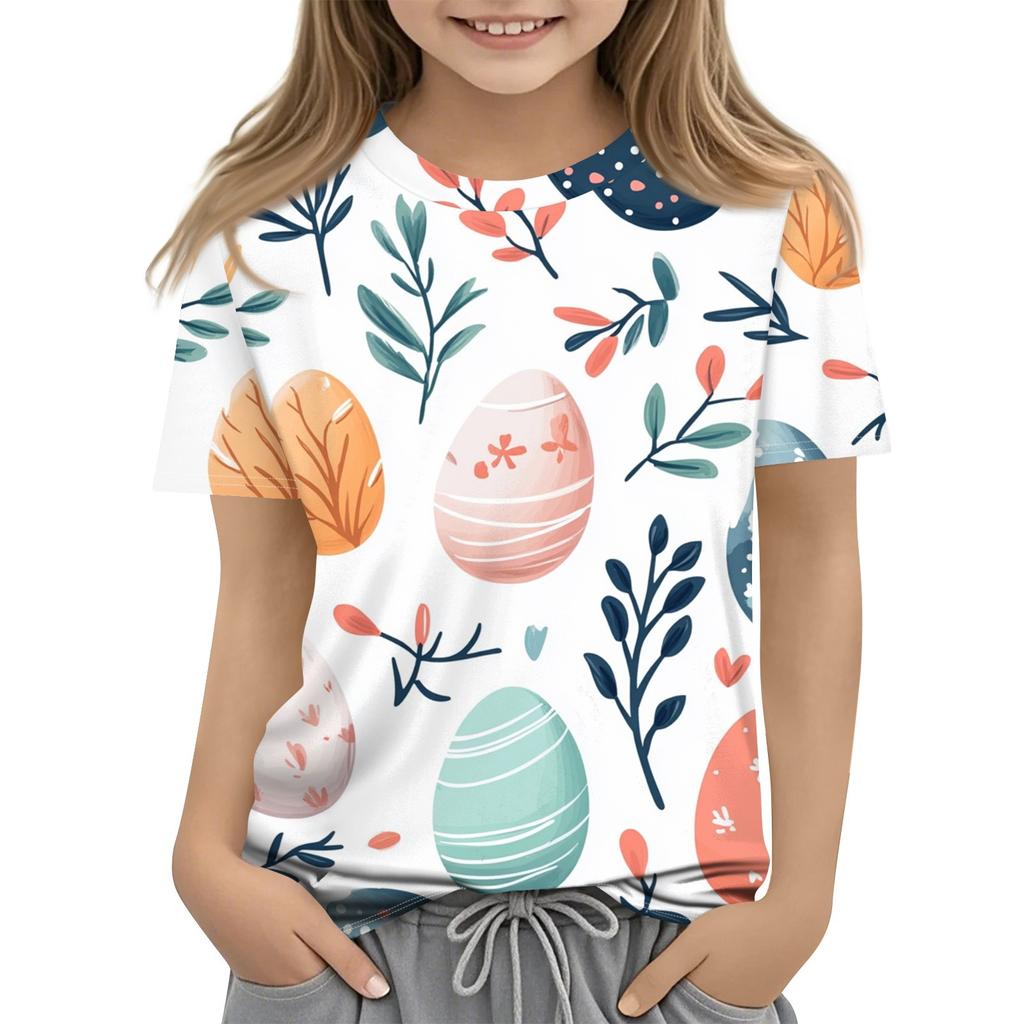 Детская модная повседневная футболка с коротким рукавом и принтом в виде Пасхи и круглым вырезом