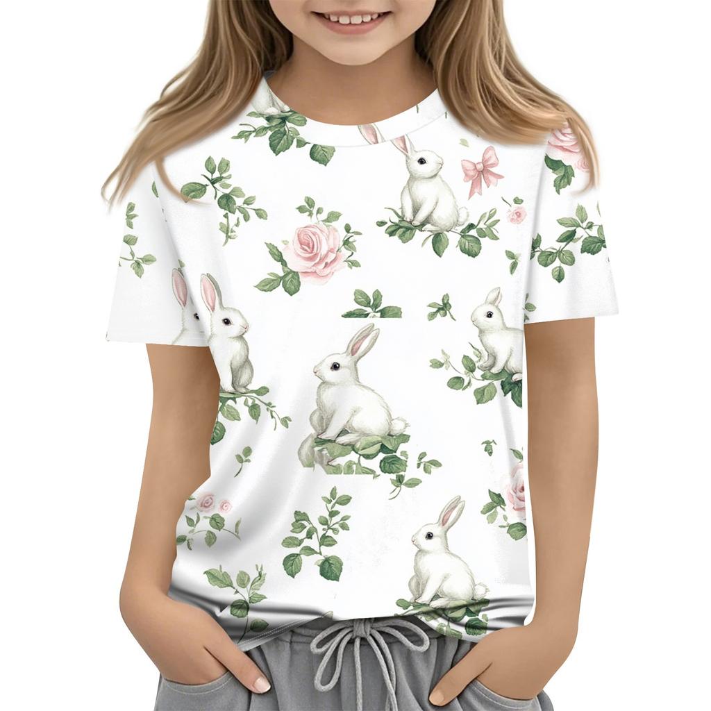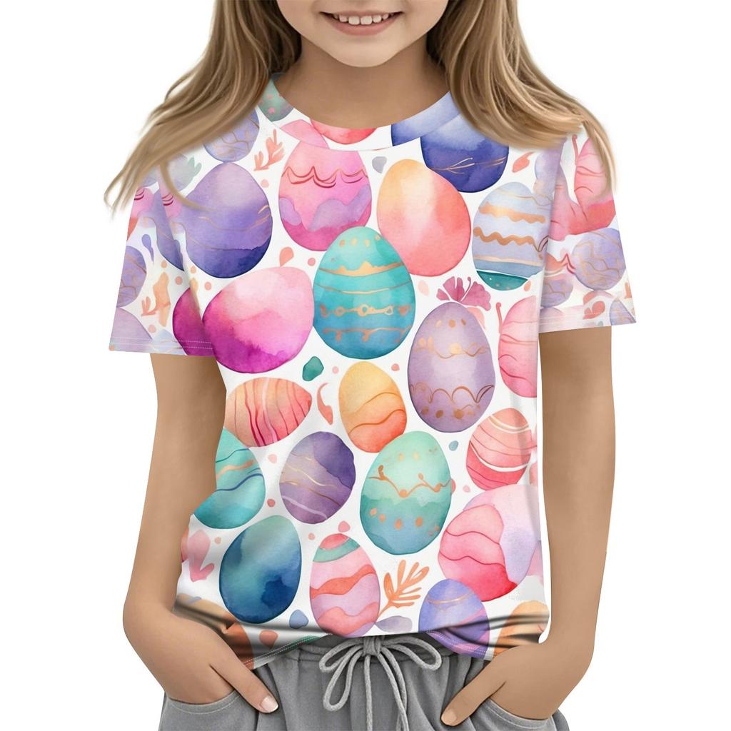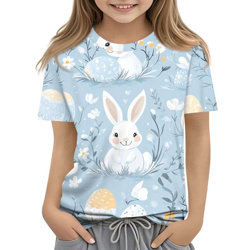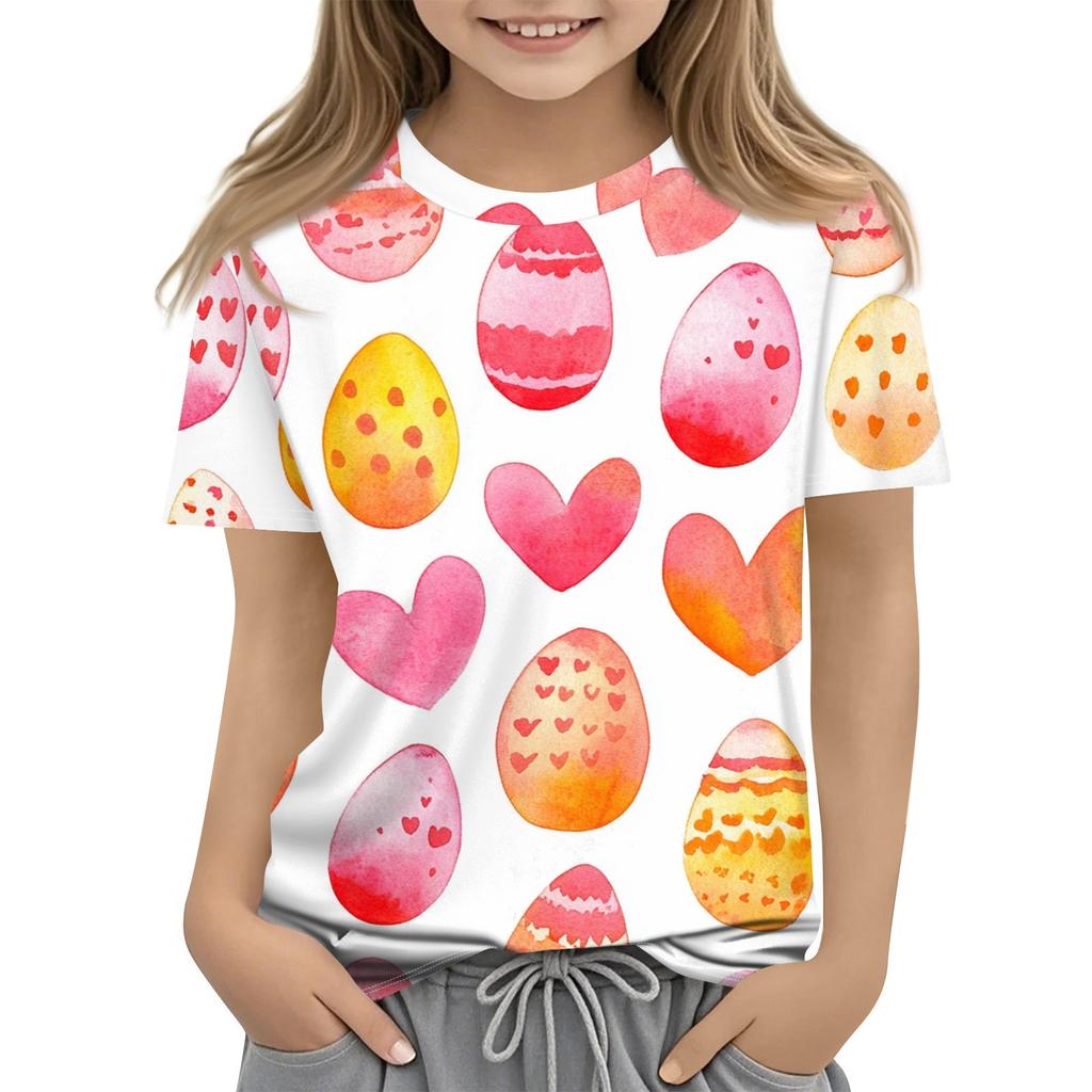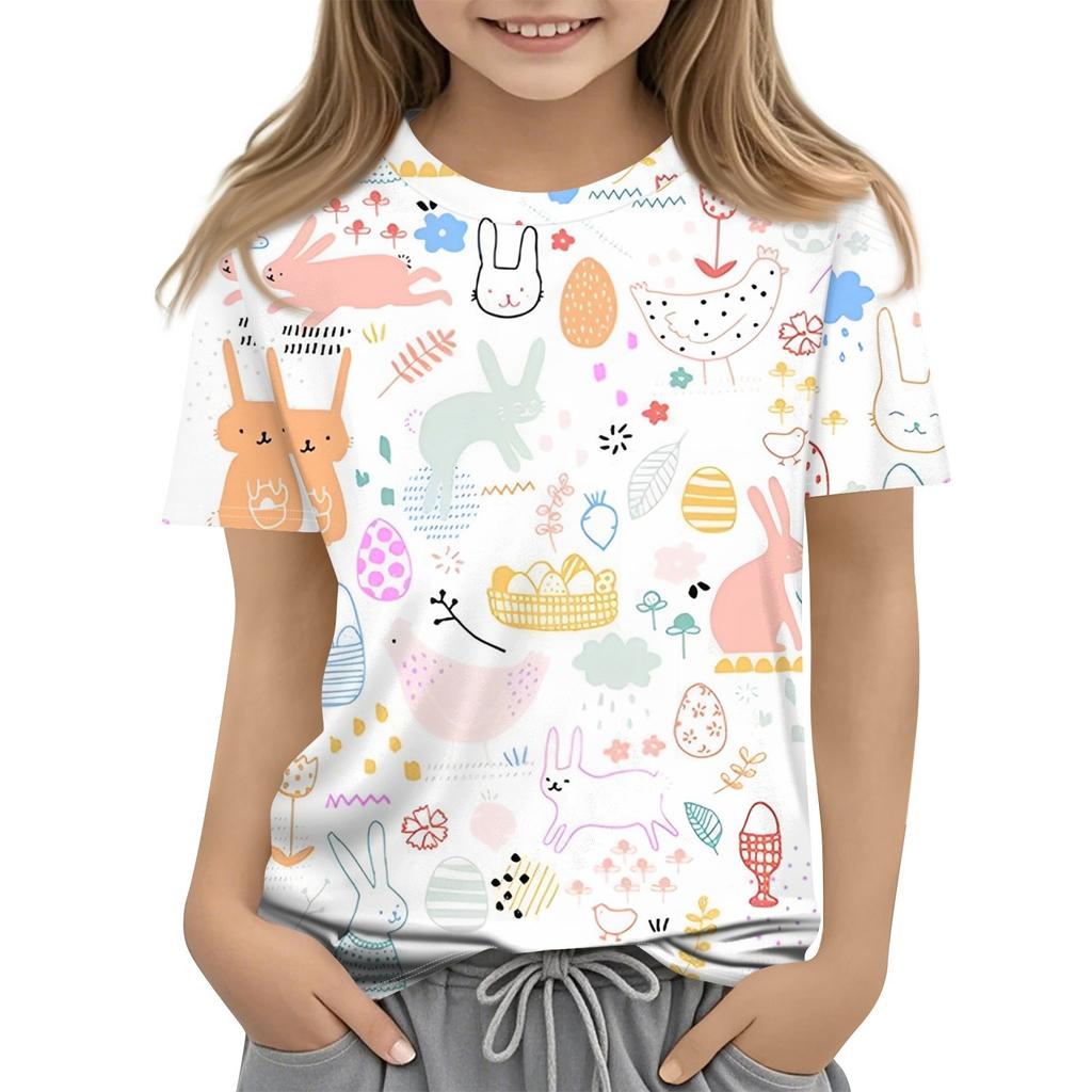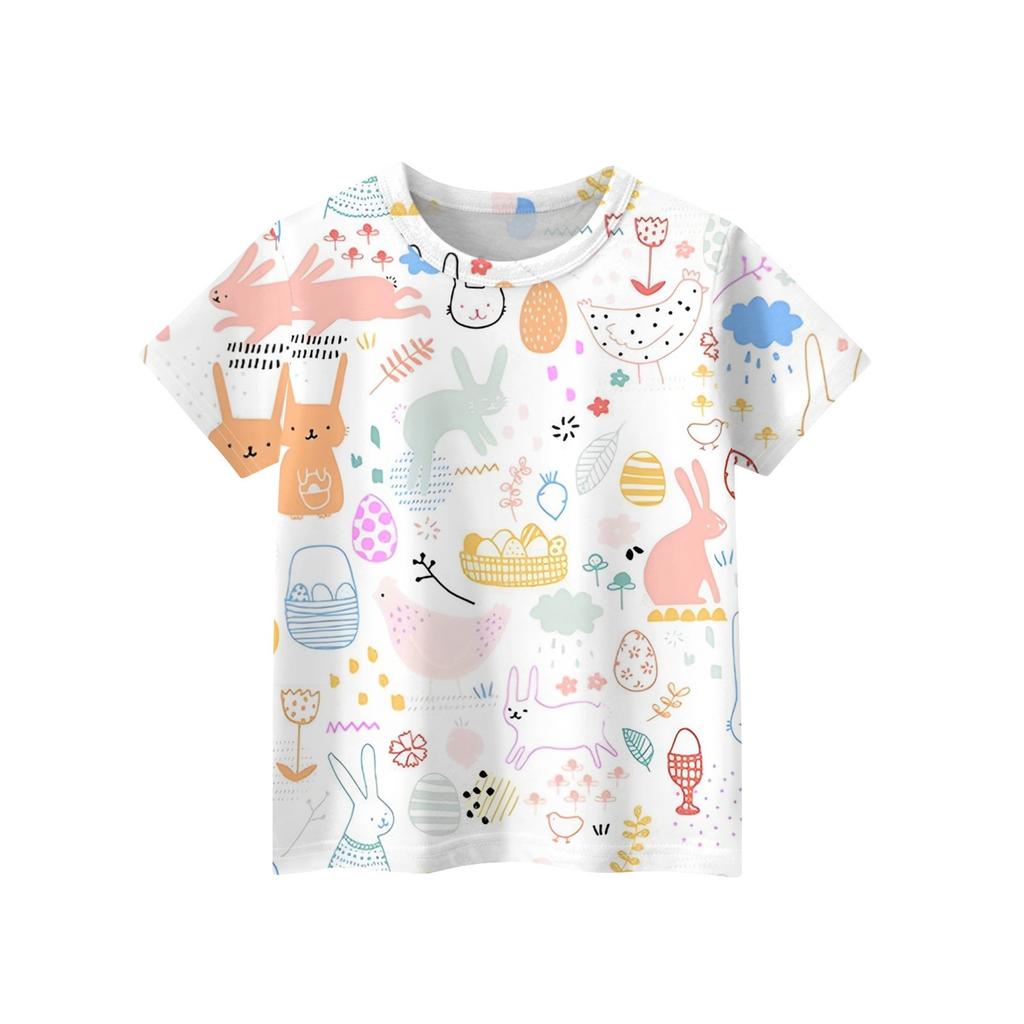Детская модная повседневная футболка с коротким рукавом и принтом в виде Пасхи и круглым вырезом