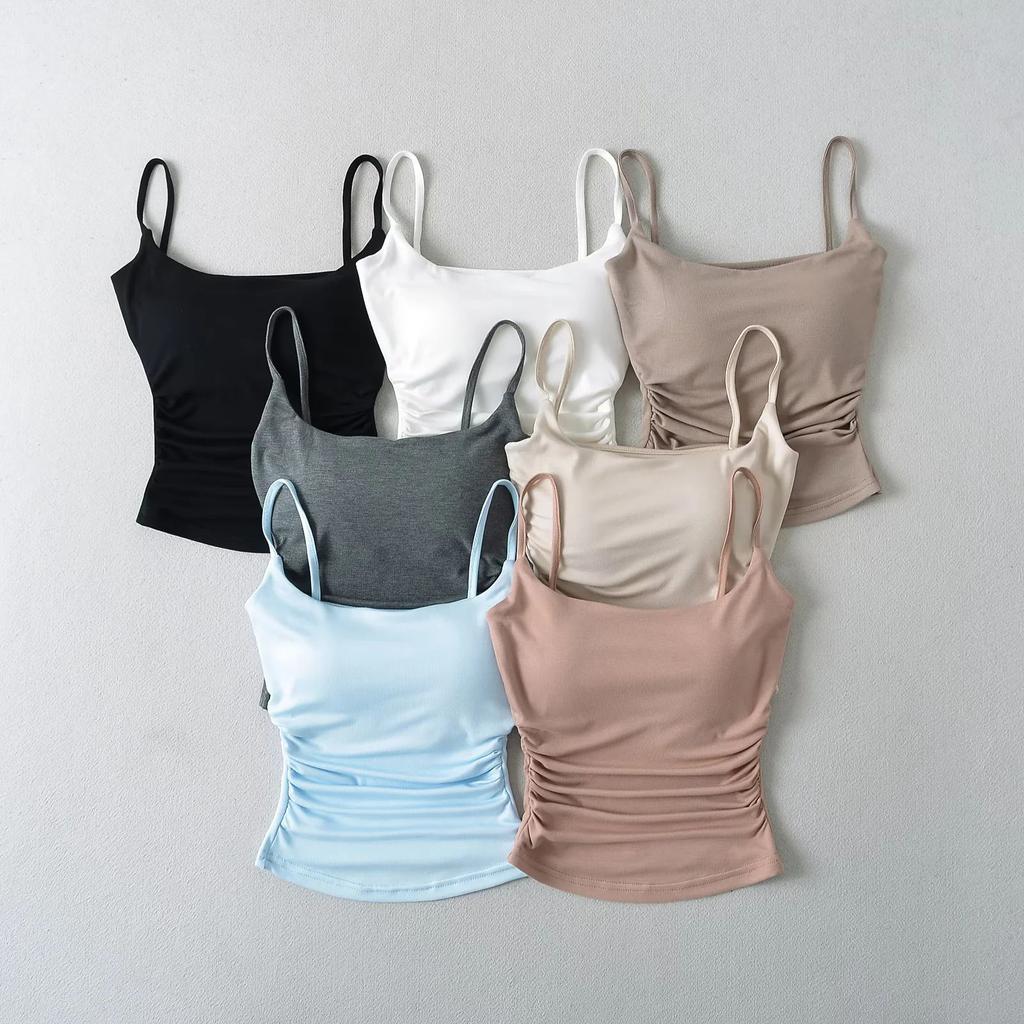 Сексуальный европейский и американский стиль, боковая плиссированная майка, пикантный женский стиль, плоский короткий жилет, эластичный топ — купить товар онлайн с бесплатной доставкой по всему миру!