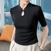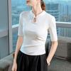 Женская новая футболка со средним рукавом для женщин, новая осенняя женская футболка в стиле ретро с пуговицами, в китайском стиле, с рукавом-пятью, белый топ с воротником-стойкой