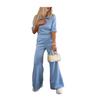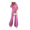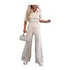 Универсальный дизайн: Этот комплект из двух предметов состоит из короткого облегающего топа и широких брюк с высокой талией, которые легко подчеркнут вашу фигуру.. Идеально подходит для разных типов телосложения и возрастов, предлагая шикарный и подчеркивающий достоинства силуэт для повседневной носки.