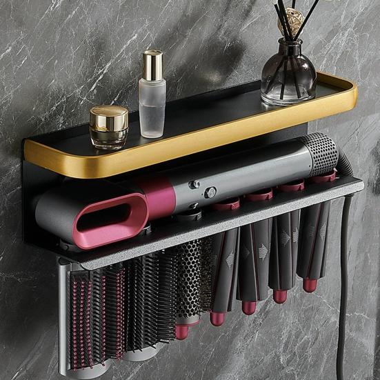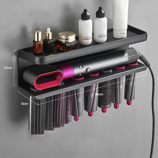 Храните свои инструменты для ухода за волосами организованно и легкодоступно с помощью этой универсальной стойки для хранения.. Благодаря двум вариантам установки — с перфорацией и без перфорации — эта стойка обеспечивает гибкость в соответствии с вашими потребностями.