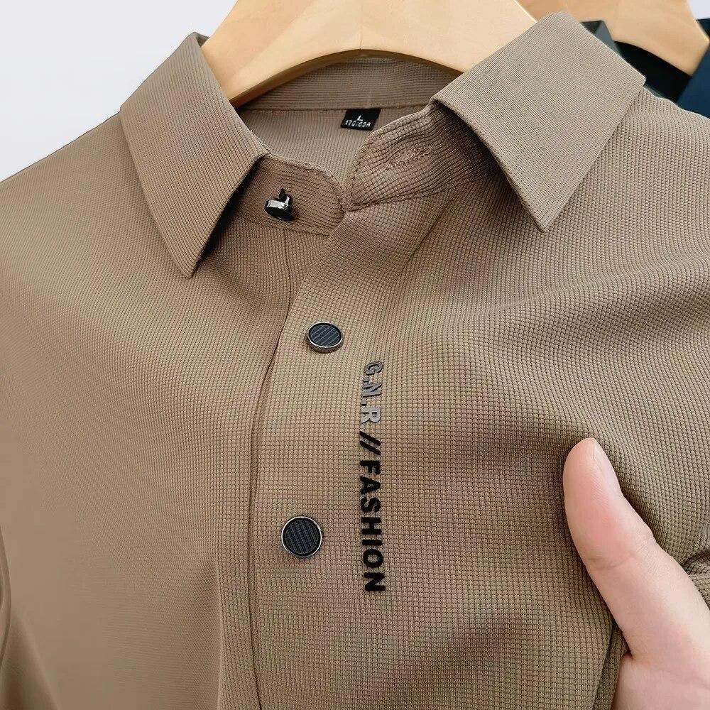 Мужская футболка с коротким рукавом, летняя бесшовная рубашка поло из ледяного шелка в деловом стиле