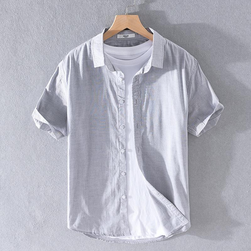 Дышащая льняная рубашка мужская с коротким рукавом свободная летняя рубашка с воротником из хлопка