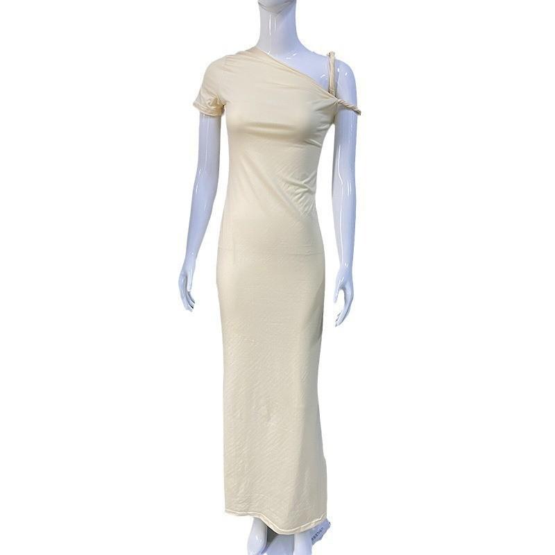 Летнее европейское и американское платье с косыми плечами, одно плечо, скрученное, облегающее, однотонное платье
