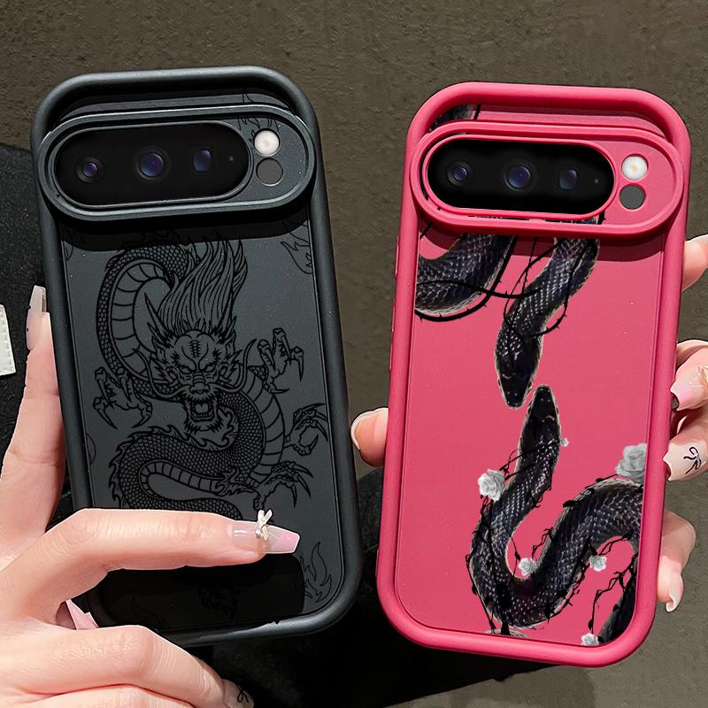 Матовый чехол из ТПУ с рисунком неземного дракона для Google Pixel 9 Pro XL 8 Pro 8A с рисунком розы и змеи, мягкий противоударный чехол для телефона