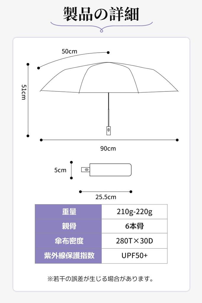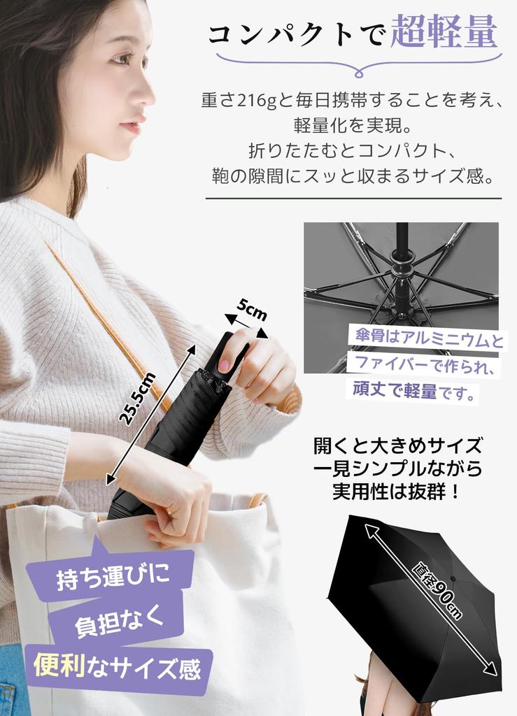 [Сверхлегкий и долговечный] Толщина в сложенном виде составляет всего 5 см, длина — 25,5 см, а вес — около 216 г, что делает его очень легким и компактным для складного зонта, который открывается и закрывается автоматически.. Компактный размер позволяет легко хранить в сумке, не добавляя объема.. Изготовлен из 6 прочных и долговечных спиц зонта из стекловолокна, спицы имеют антикоррозийное покрытие, предотвращающее их ржавление.. Кроме того, он изготовлен из легкого, но прочного алюминия и небьющегося стекловолокна, поэтому он легче и прочнее обычного зонта, так что вы можете быть уверены даже в сильный ветер.. Даже если складной зонт перевернется ветром, он вернется в исходное положение после нажатия кнопки открытия/закрытия, что снижает вероятность его поломки.