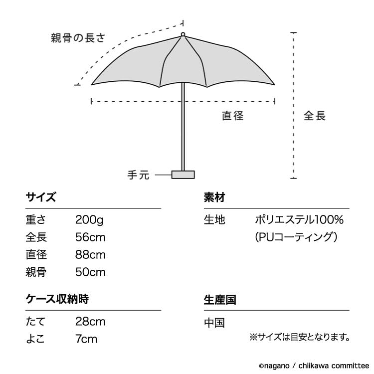 «Чикава х Wpc». предмет для сотрудничества! Доступен в двух цветах: «Корона Ханака» с милым рисунком, на которой изображены Тикава и другие, играющие с ней и создающие цветочные венки, и «Нэмуи» с успокаивающим изображением сна на футоне, похожем на облако.. Полностью затемненный и высокофункциональный. Его можно использовать как в дождь, так и в солнечную погоду, так что наслаждайтесь прогулками с Chikawa и в дождливые, и в солнечные дни!