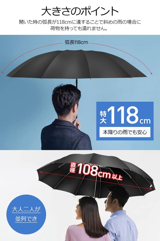 [Сверхбольшой складной зонт] Длина дуги поверхности зонта составляет 118 см, а диаметр — 108 см, что делает его чрезвычайно большим размером, которым могут с комфортом пользоваться даже крупные мужчины, не чувствуя себя стесненными, и в нем легко поместятся двое взрослых.. Площадь, которая может защитить вас от дождя, большая, поэтому вы можете быть укрыты даже если несете рюкзак.. В комплект входит чехол для хранения, поэтому, если вы храните его в сумке для поездок на работу или в машине, вам не придется беспокоиться о внезапном дожде.