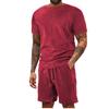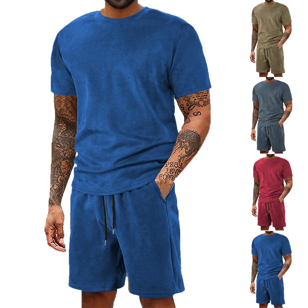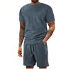 Мужской однотонный повседневный комплект из двух предметов с круглым вырезом и короткими рукавами