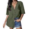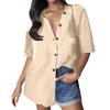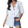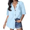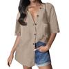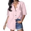 Женская однотонная рубашка свободного покроя из хлопка и льна с коротким рукавом и застежкой на пуговицы, с карманом