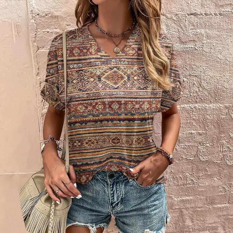 Женская футболка Boho Harajuku с графическим принтом, летние повседневные топы с коротким рукавом, уличная мода, футболка с V-образным вырезом, женская одежда, футболки женские