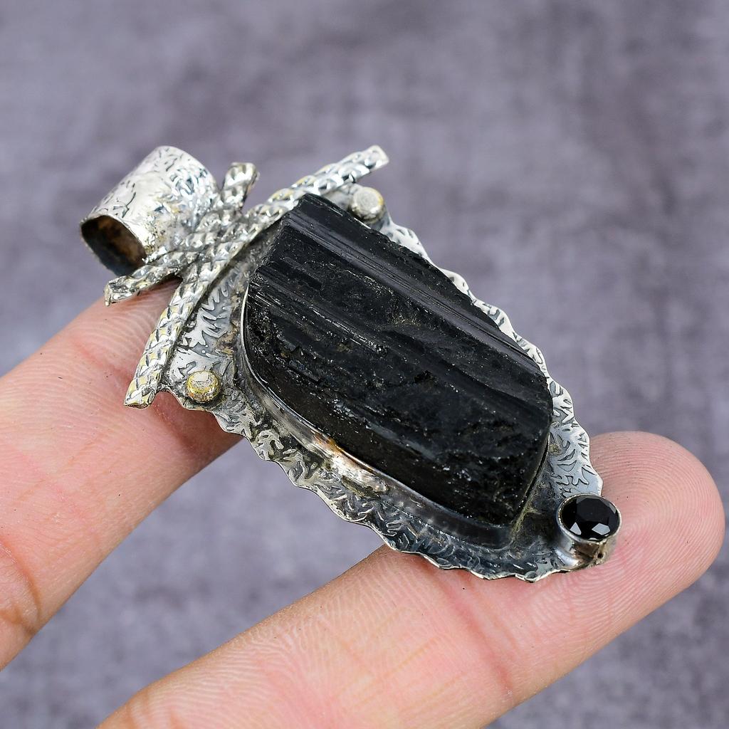 Подвеска из стерлингового серебра 925 пробы с натуральным черным турмалином и шпинелью 2,28 дюйма